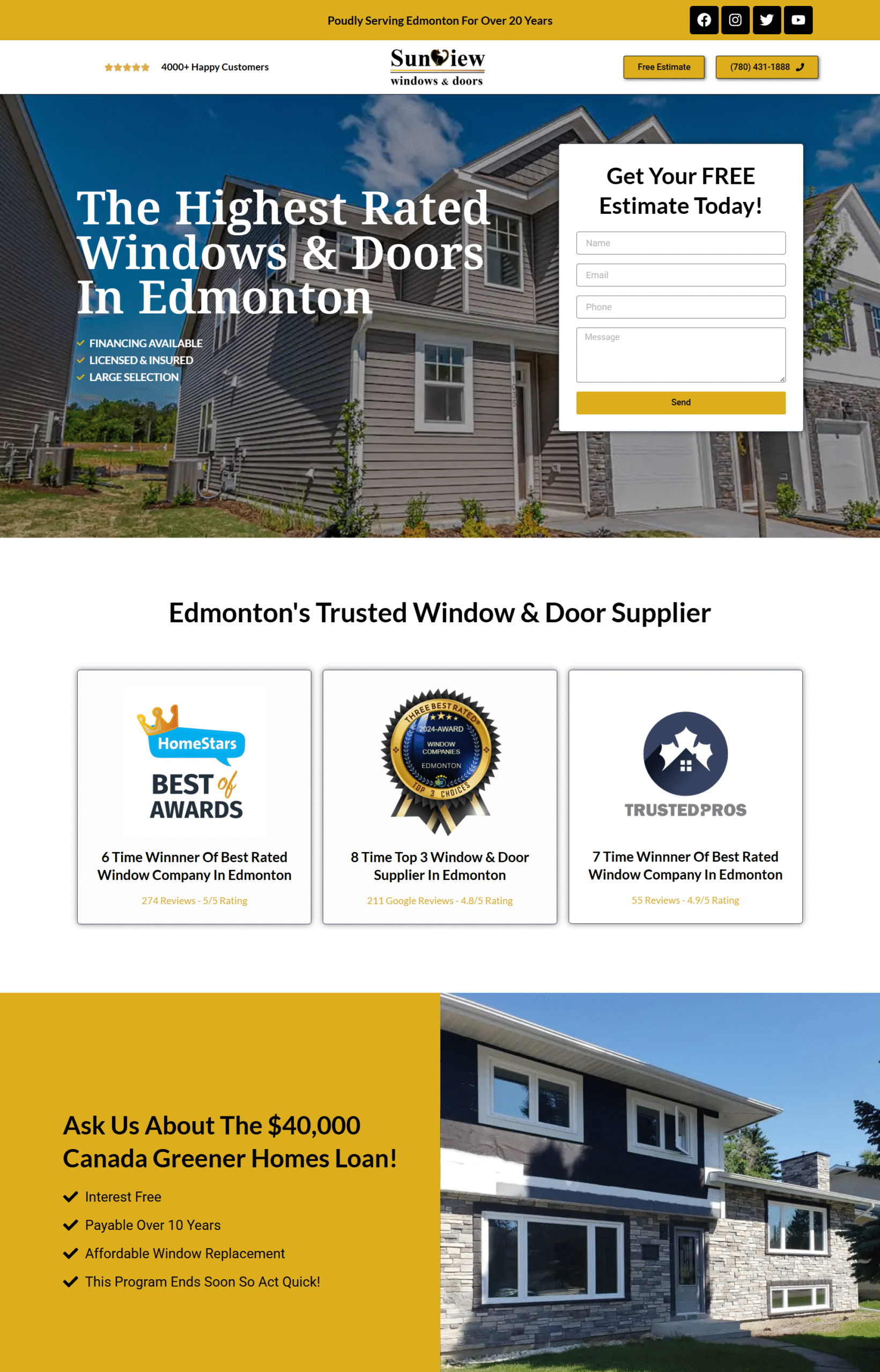 Rather than sending Google Ads traffic to their main website (sunview-windows.com), which has multiple navigation paths and broader messaging, this landing page was created to tightly align with ad keywords and user intent. By eliminating distractions and emphasizing a single call-to-action, the page maximizes the return on ad spend (ROAS).